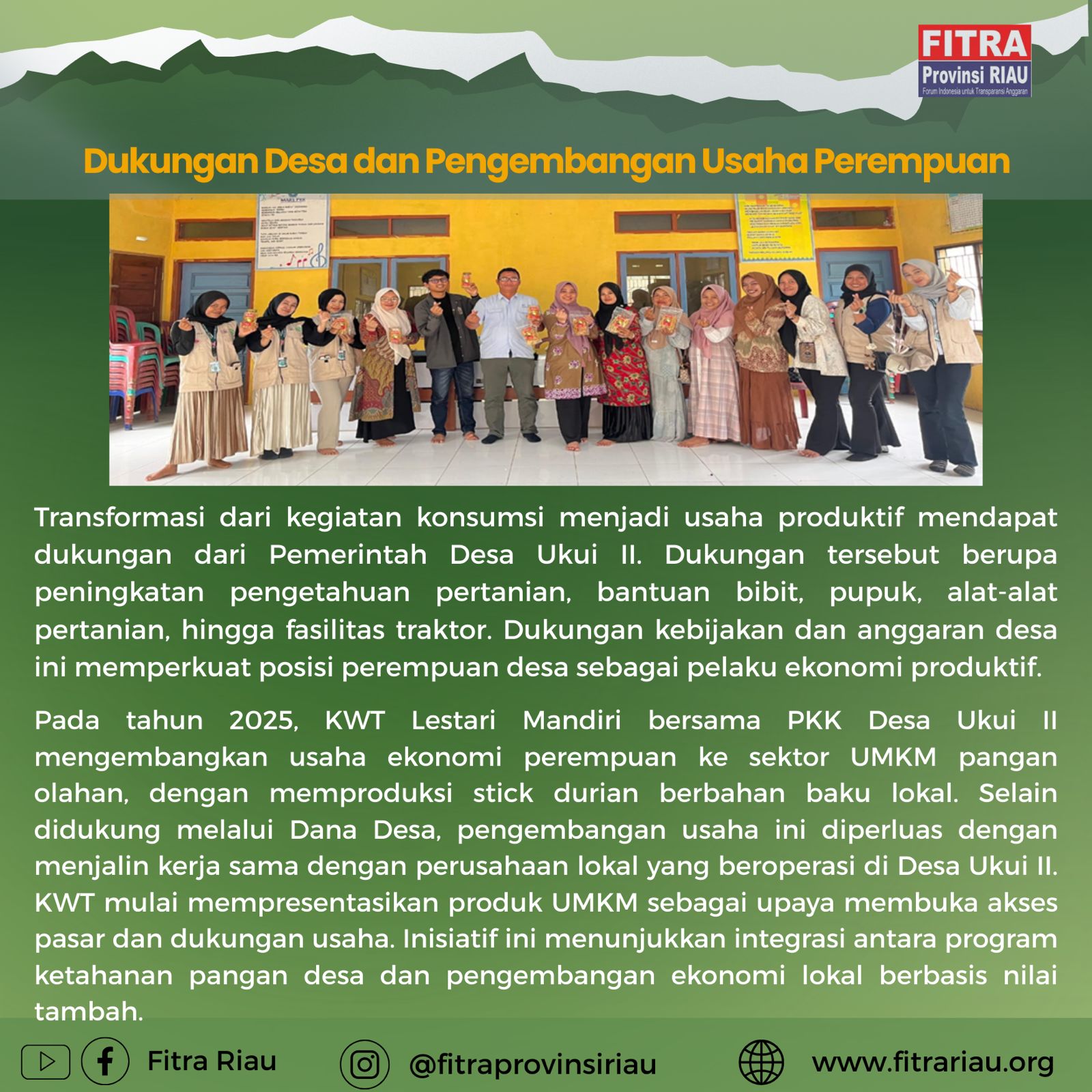 Fitra Riau memberikan Bantuan Pertanian Untuk peningkatkan Pemberdayaan Perempuan di Desa Bumbung